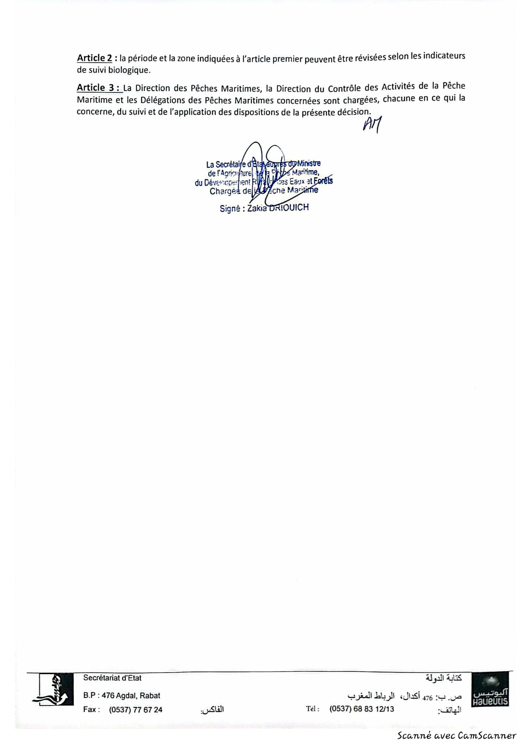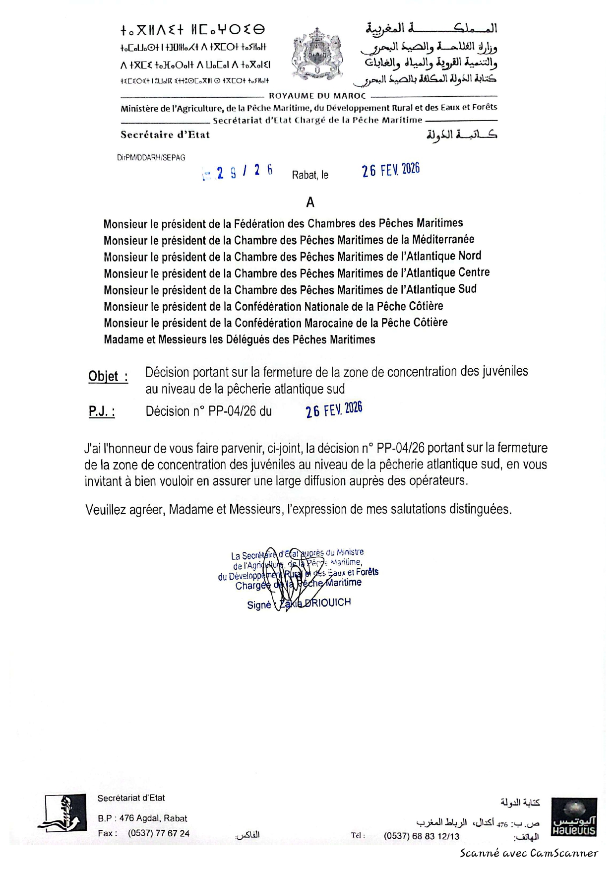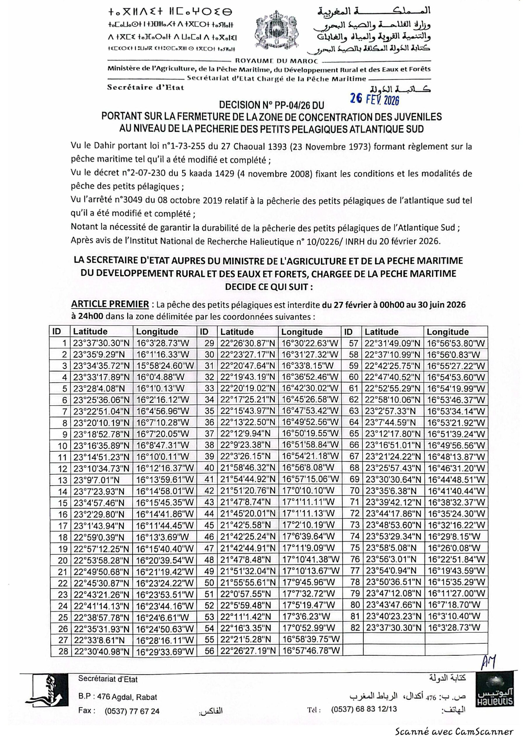 إعلان عن قرار يهم إغلاق منطقة تجمع صغار الأسماك بالمصيدة الأطلسية الجنوبية.