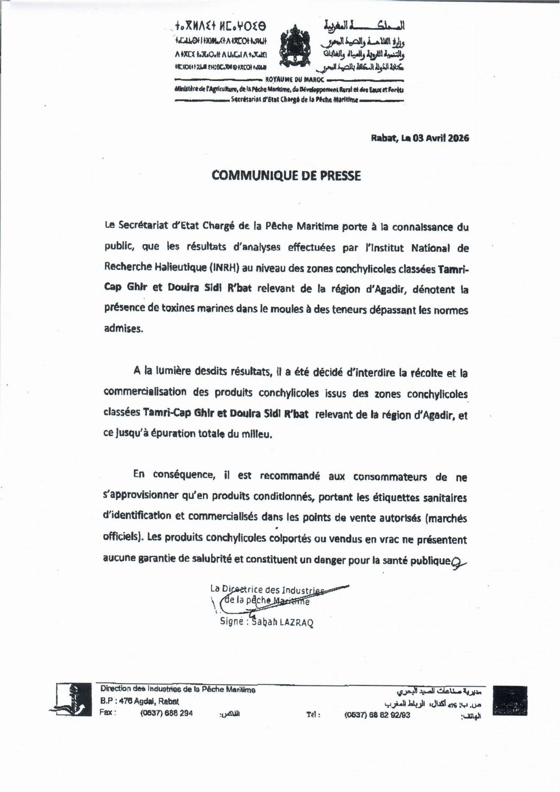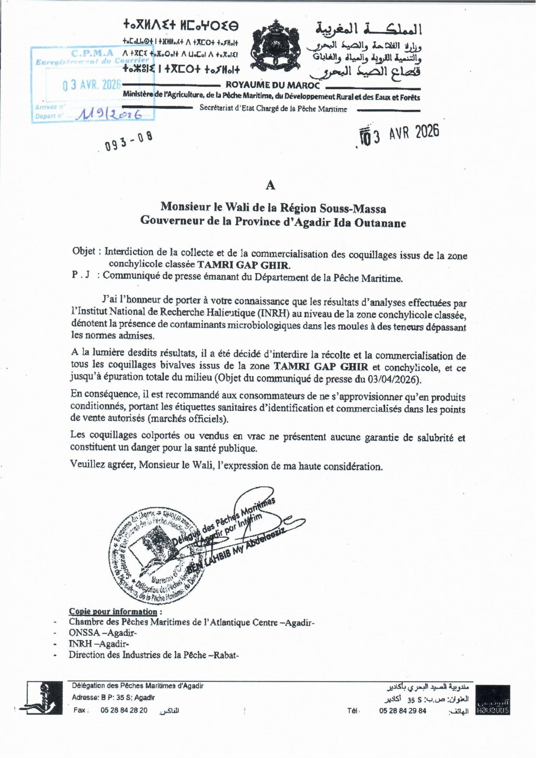 قرار منع جمع وتسويق جميع أنواع المحار ثنائي الصدفة من منطقة تامري -كاب غير.